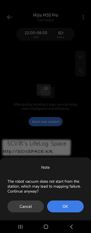어차피 이렇게 실내지도를 그리기 전에는 로봇청소기 본체를 스테이션에 가져다 두라고 하니, 미리 두시는걸 추천.