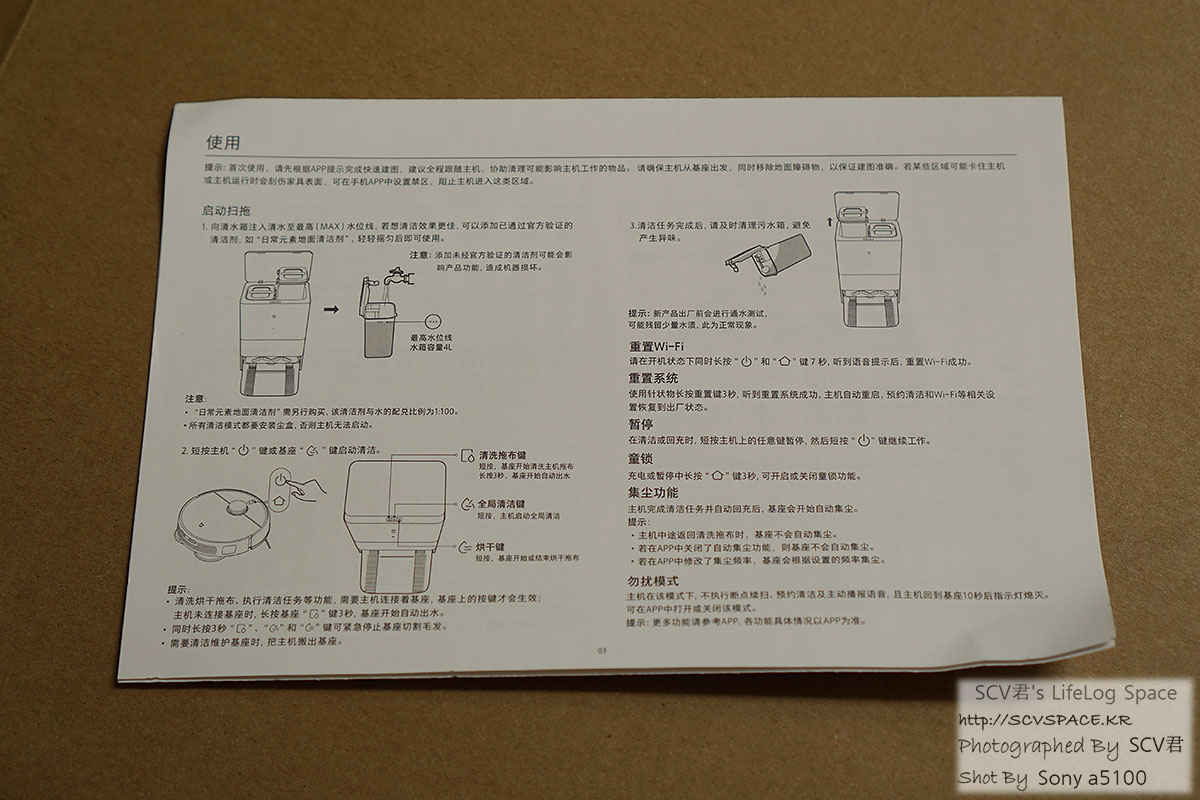 로봇청소기가 처음이라 다른 제품과의 비교는 힘들고(하더라도 감임), 자동 배수/급수 키트는 설치 안한 상태입니다.