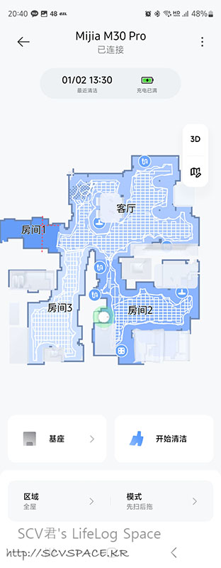 이 부분은 집 크기(= 청소면적)에 따라 달라집니다. 제 경우 청소면적은 로봇청소기 측정치 기준 45제곱미터.