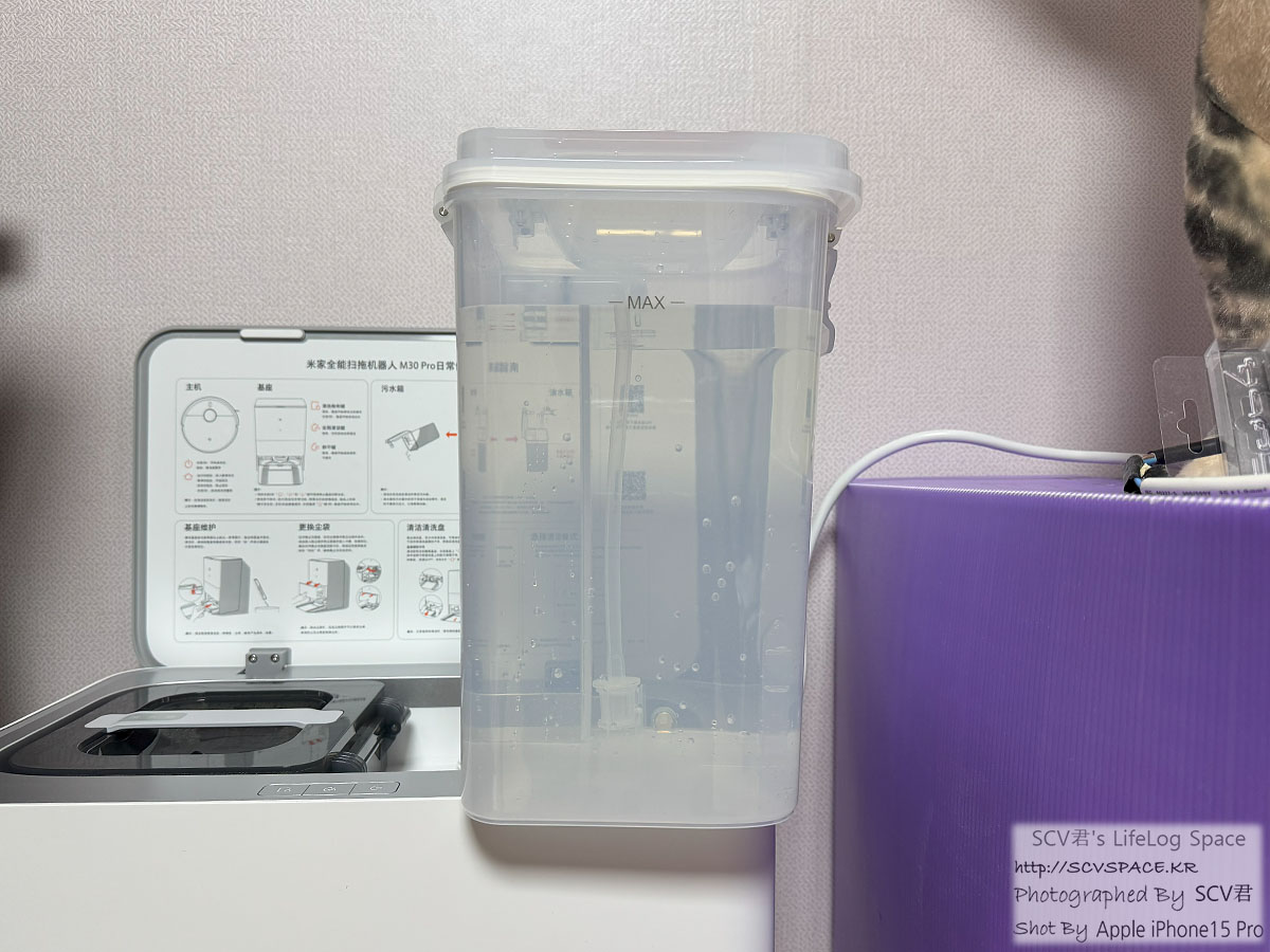 물 채운 이야기는 글 마지막에나 하겠지만, 제 경우는 물통 한번 채워서 5일 연속으로 청소작업이 가능하더군요.