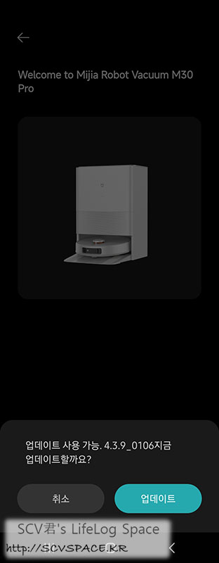 연결이 다 되면 이렇게 펌웨어 업데이트를 하라고 뜨는데(최신버전이 있을 경우), 업데이트의 경우도 별도 알림은 없는데 스테이션에 장착(후면 충전단자 접촉) 되어 있지 않으면 실패하면서 다른 다음 과정을 진행합니다.