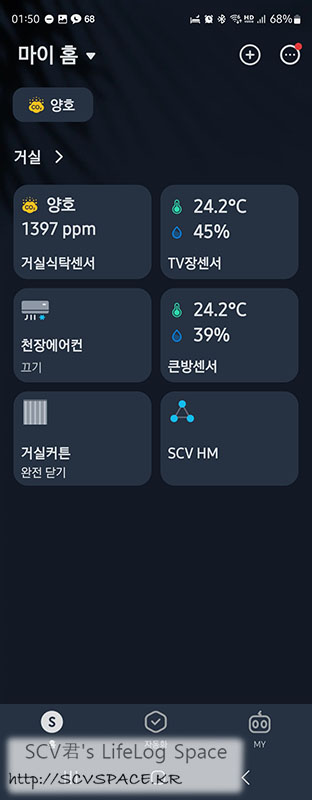 그래서 위 타일 기준으로는 거실식탁센서, 큰방센서가 추가되었습니다.