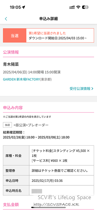 이플러스 결제수단이 있으니 이런 갑작스런 응모도 대응이 되고 좋네요.
