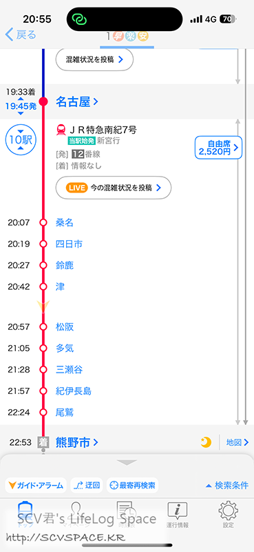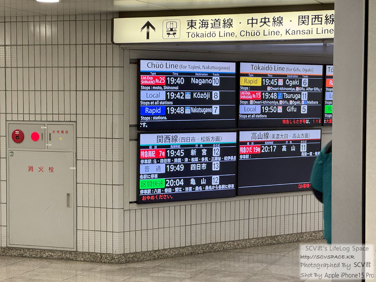 오후 7시 33분에 나고야역 하차.