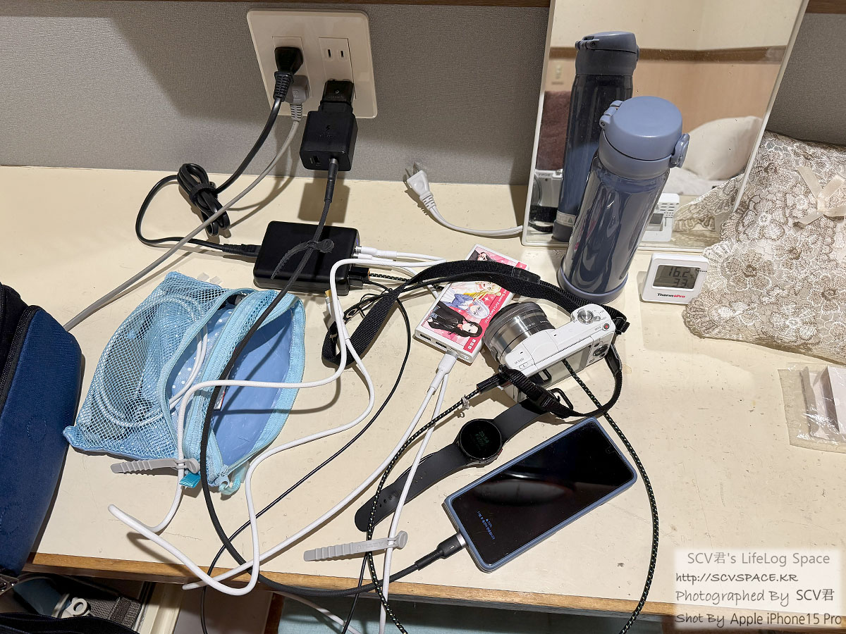 이후에는 기기 충전 걸고, 제 짐도 풀고, 온습도계로 방안 체크도 좀 해보고(난방전 실내온도 16도 찍힘) 씻을 준비를 합니다.