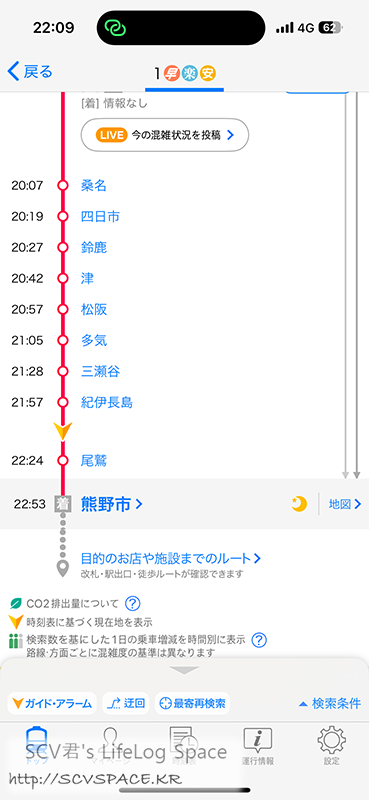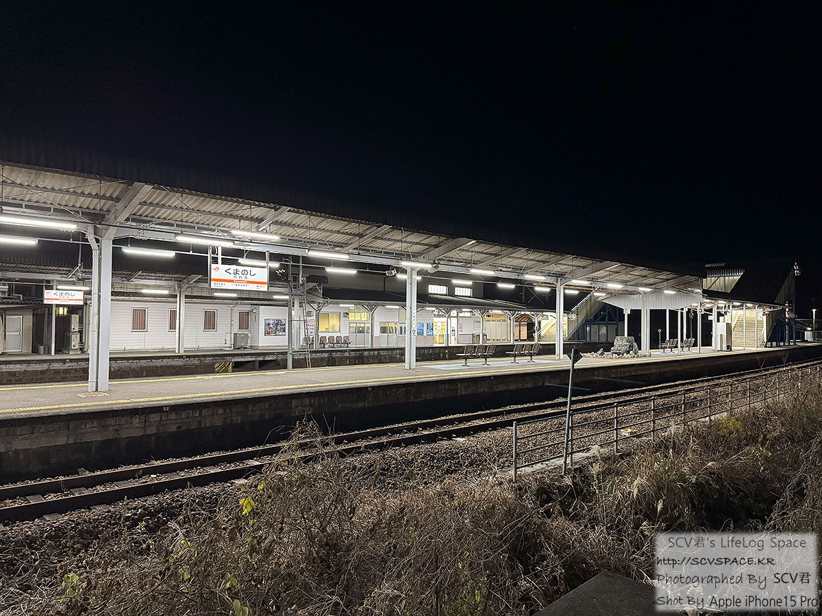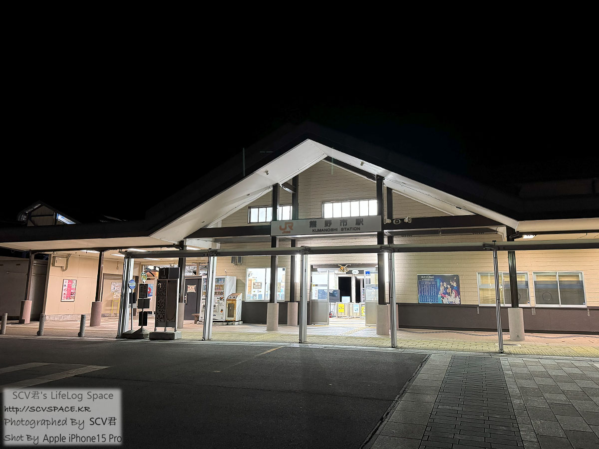 목적지인 쿠마노시(熊野市)역에 하차[구글지도]. 밤 10시 55분입니다.