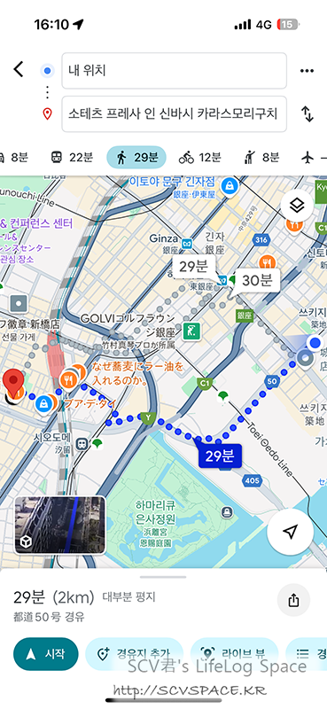 지도앱 도보안내 기준 도보속도가 4Km/h라던데, 저는 걸음이 빠른 편이라 언제나 조금 빨리 도착하더군요.
