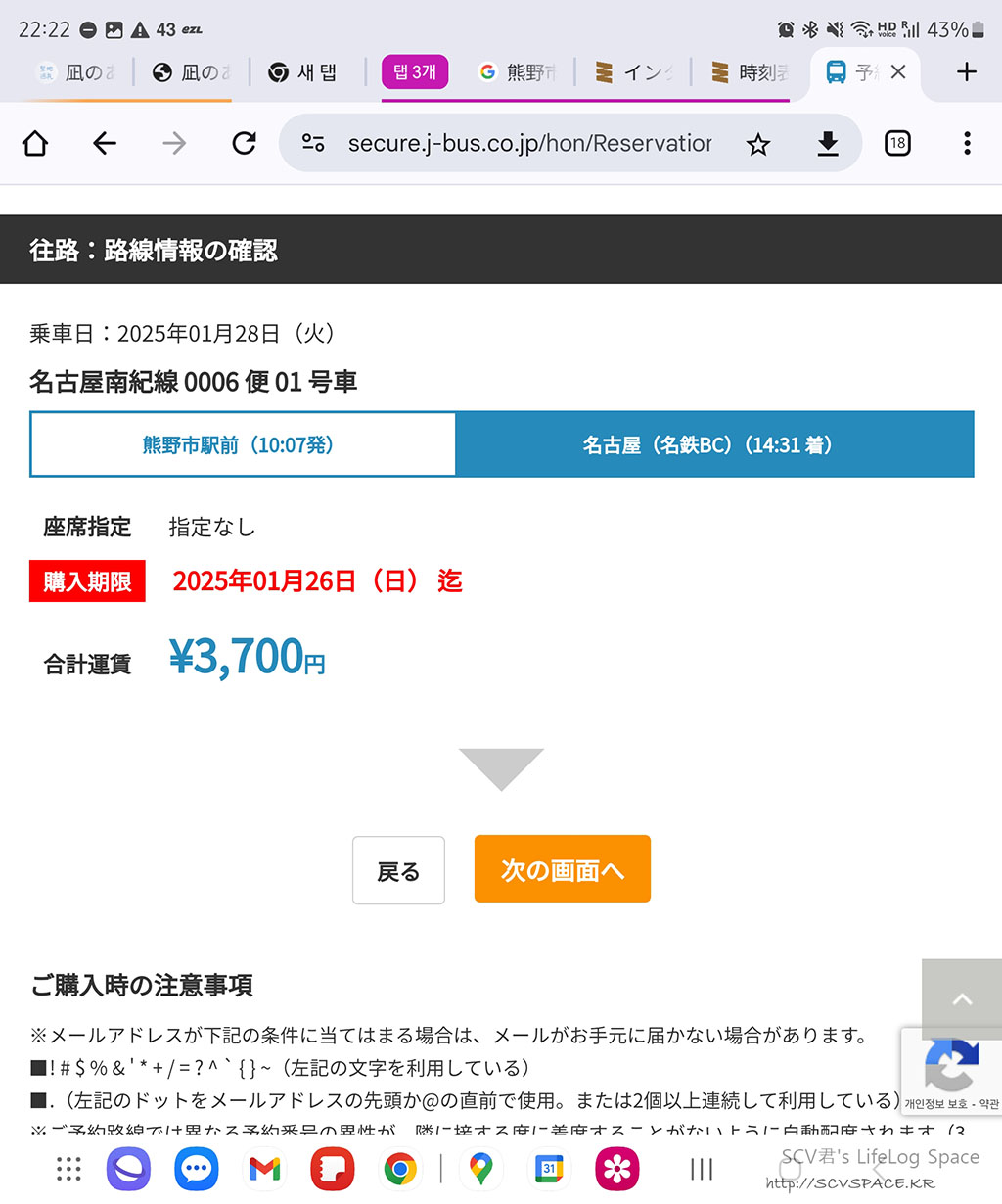 다행히 시간 내로 거의 정리가 끝나서, 이렇게 마지막날 나고야로 나갈 고속버스까지 예약하면서 어찌어찌 마무리.