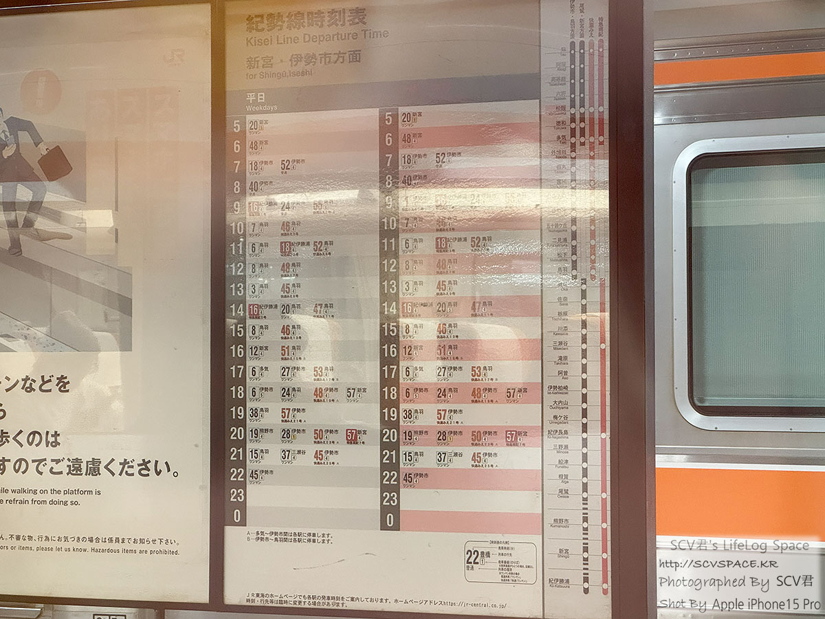 이제 12분 뒤에 미에현 신궁쪽으로 내려가는 열차를 타야 합니다.