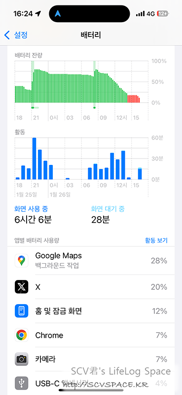 역시 배터리를 끝까지 쓰는건 찝찝해서 토트백 보조배터리에서 전원 끌어와 충전하면서 이동.
