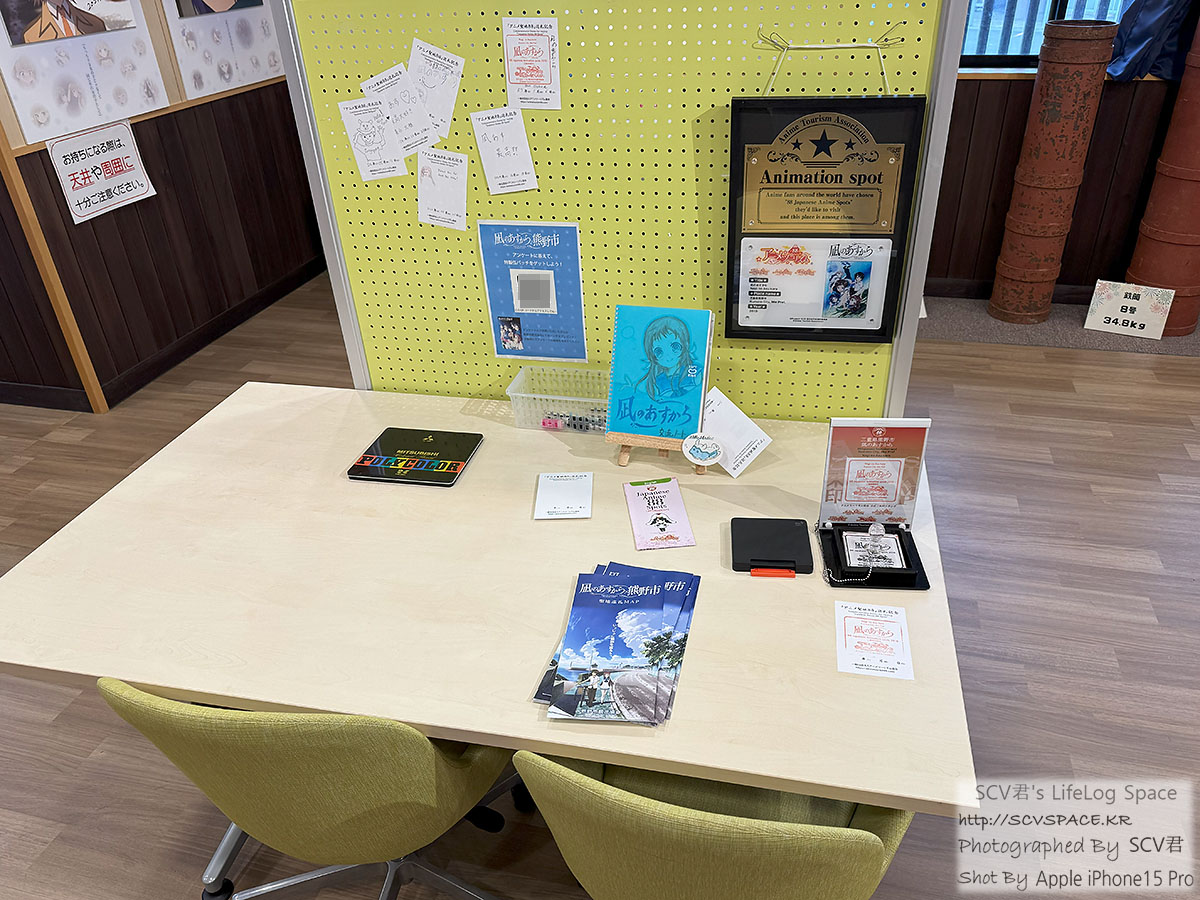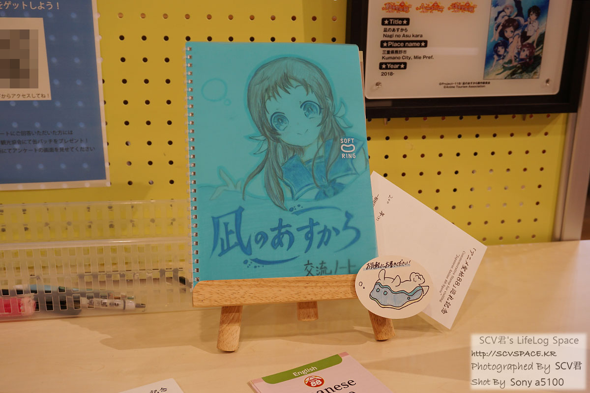 가운데에는 이렇게 기념 스탬프나 관광 안내책자(애니메이션 Ver) 가 있는데, 교환노트라고 방문객 자유기재 노트도 보이더군요.