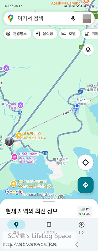 전날에 습관처럼 안드로이드/iOS 두 구글지도를 모두 오프라인 지도저장 해두면 좋았겠지만...