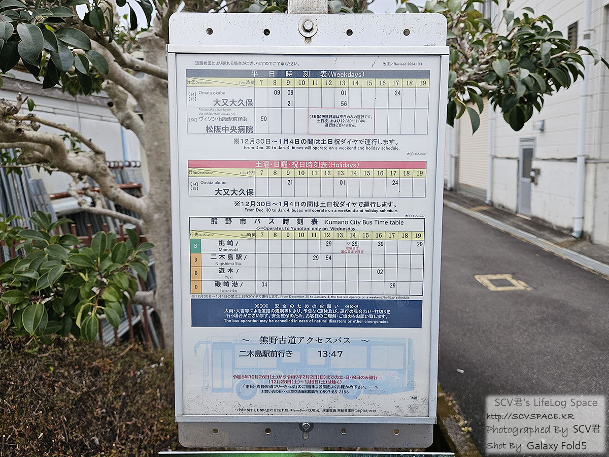 2025.01 신바시~쿠마노시 - 10. 4일차-3 : 잔잔한 내일로부터 성지순례 3 - 아타시카역 출발 ~ 오니가죠 ~ 쿠마노시역, 숙소복귀 <--- 이번 이야기