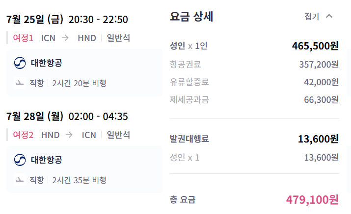 다만 이 시기가 제 일정이 좀 불확실해서, 7월 연휴기간인데도 인천 하네다 야간편 예약.