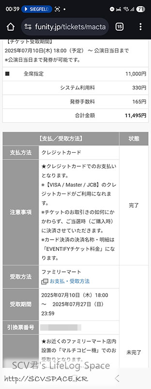 마크로스 시리즈 통합으로 사용하는 것으로 보이는 티켓사이트는 해외 카드도 안가려서 제 경우는 신한 체크카드 등록하고 결제.
