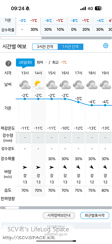 다행히 눈은 잦아든것 같은데 바람이 꽤 부는 모양. 체감온도도 살벌하네요.