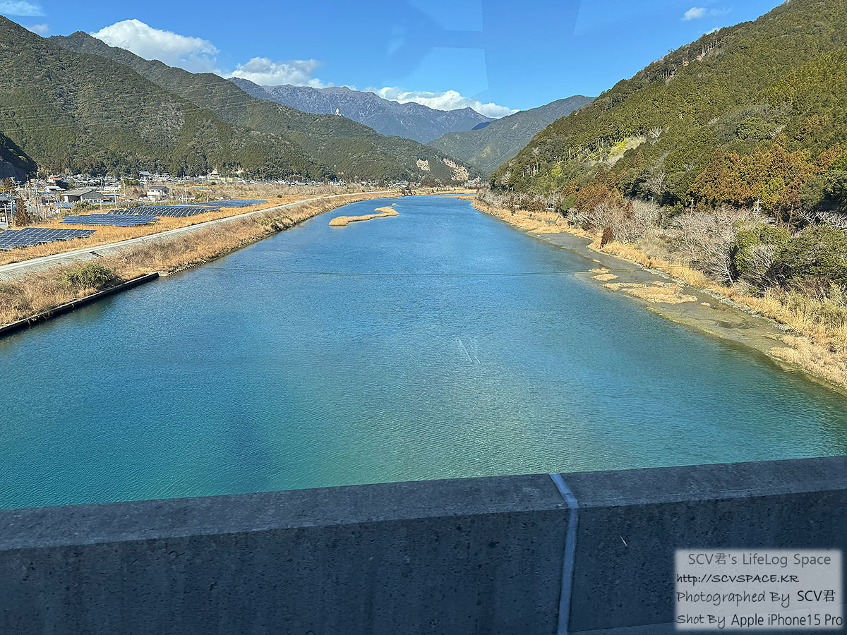 그 외에는 이런 풍경이 계속 지나갑니다. 산, 마을, 강.