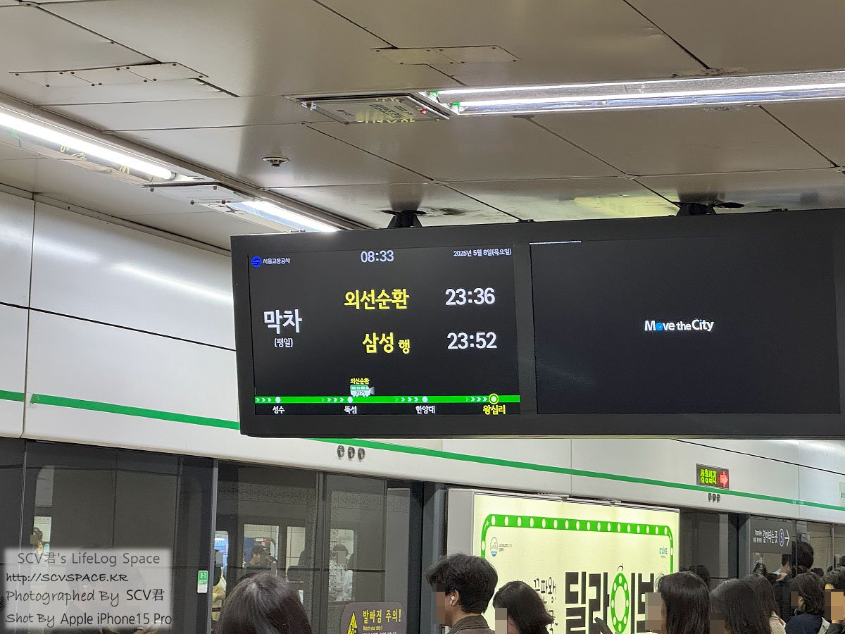 연휴 끝나고 출근했는데 2호선 안내 디스플레이 UI가 싹 바뀌었길래 한컷. 약간 신형 전동차 UI랑 맞춰진듯한?