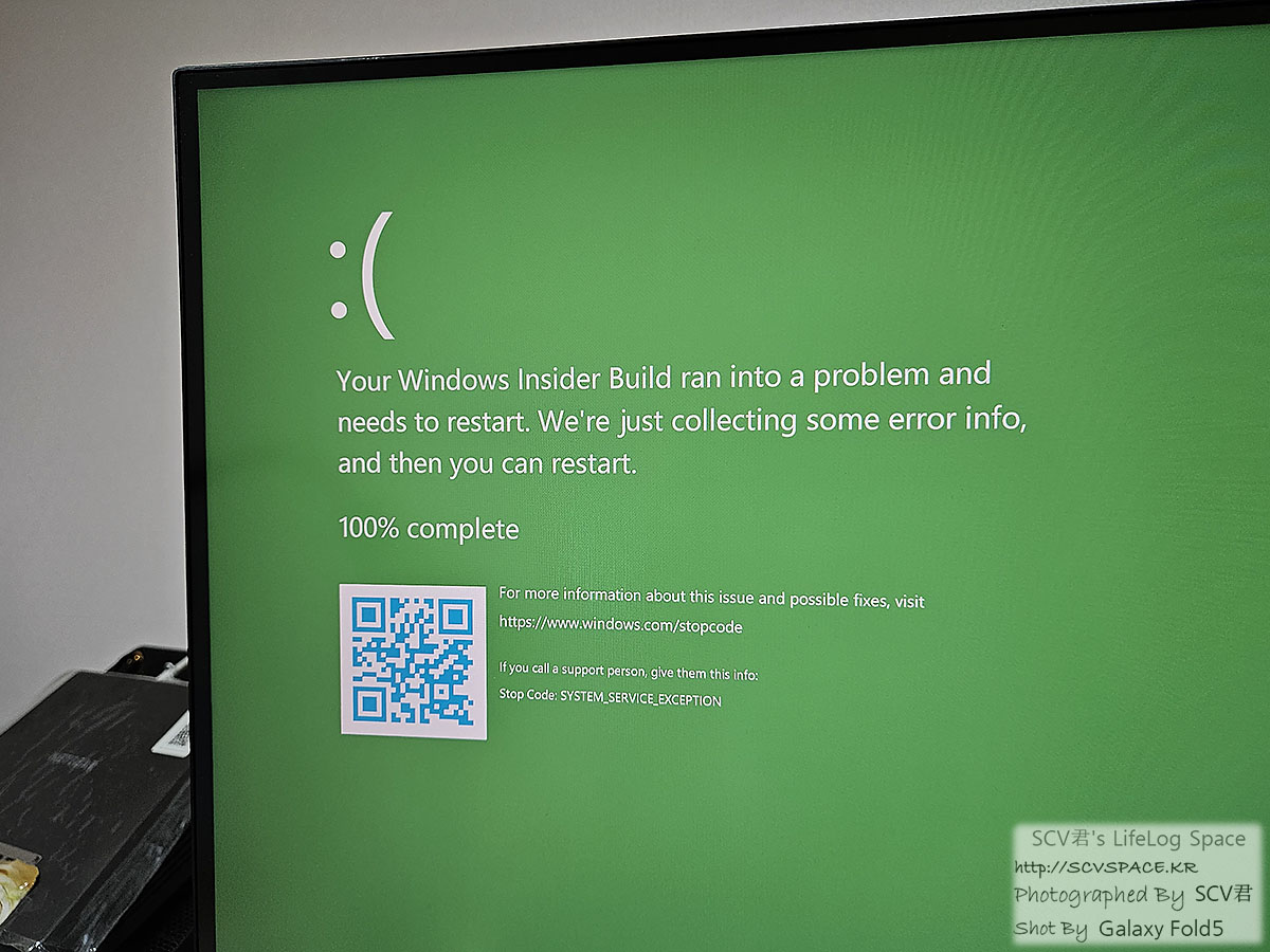 다만 통상적인 파란 정지화면이 아니라, 인사이더 프리뷰라서 그런지 녹색이더군요.