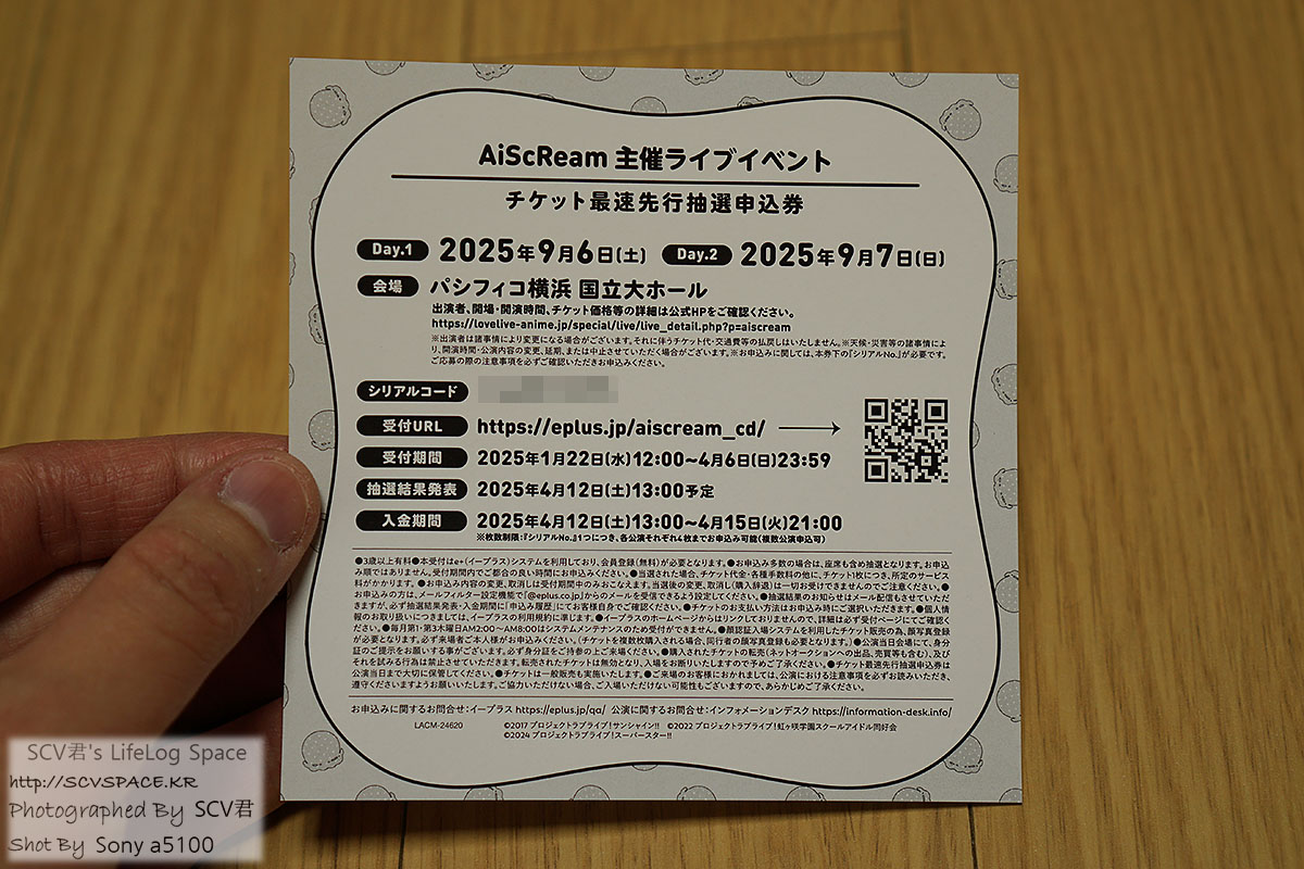 이 싱글도 올해 9월에 열리는 라이브 이벤트를 앞두고 시리얼이 들어있습니다.