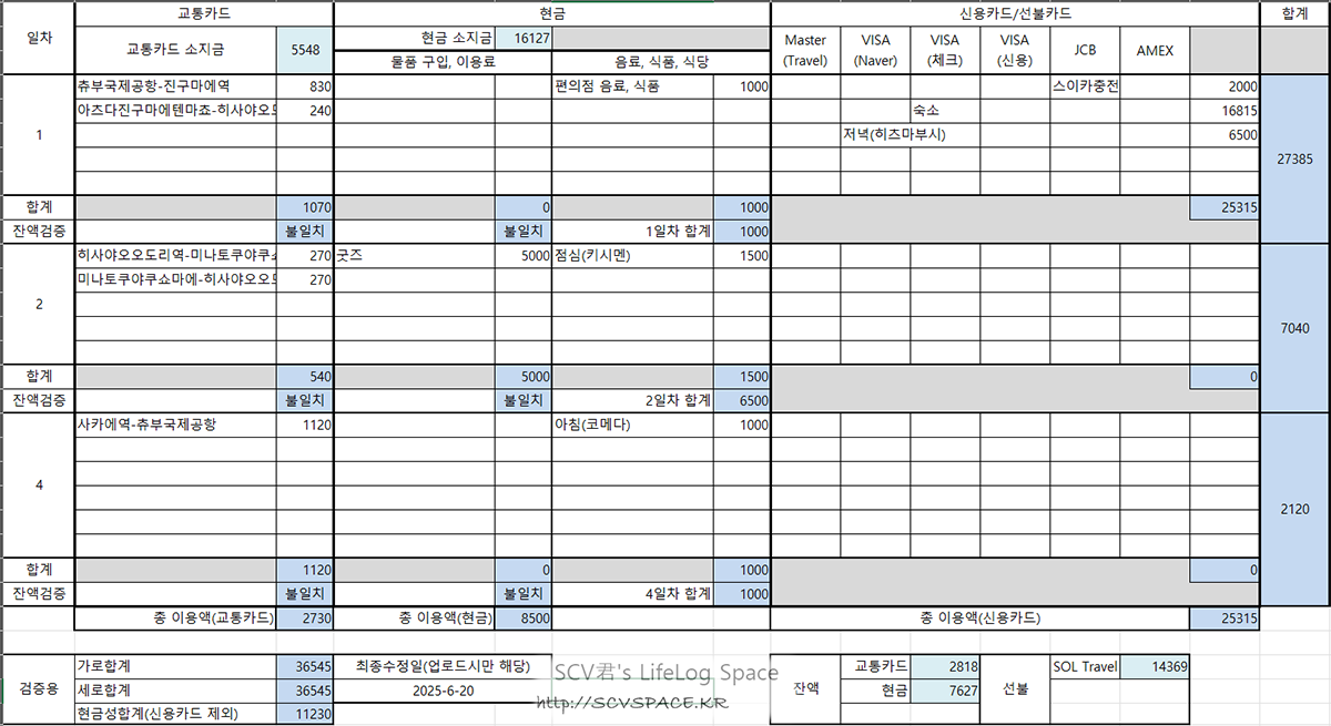 현금은 애초에 올해 다른 출국일정 생각해서 환전을 넉넉하게 해서 가져가는거라, 무조건 남을 금액입니다.
