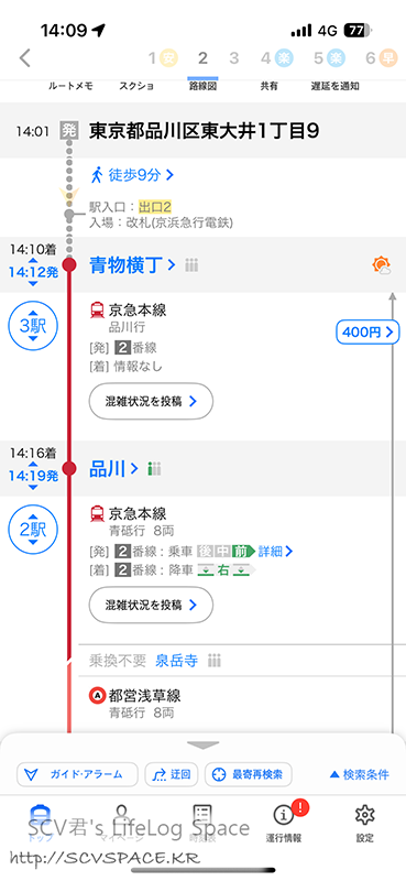 현재시간 오후 2시, 호텔과 가까운 린카이선이 아니라 반대편의 케이큐를 타러 갑니다.