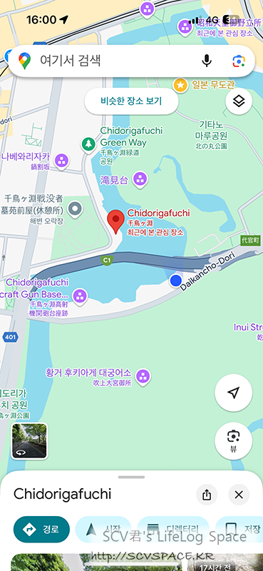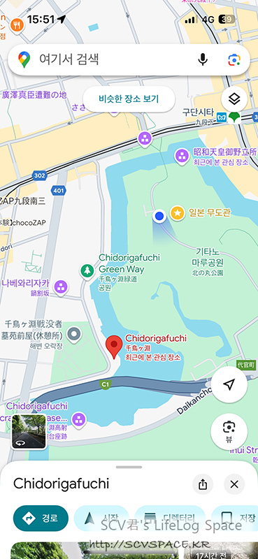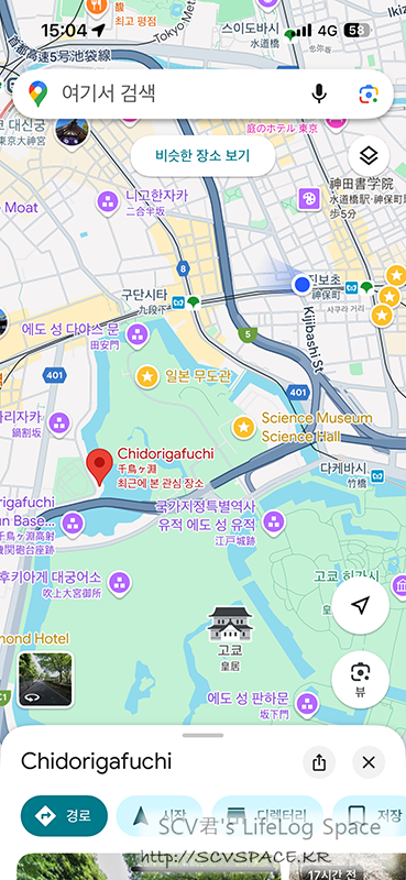 참고로 지도 캡쳐하는건 잊어버렸는데, 일단 길 따라서 꺾으려고 이쪽으로 왔습니다. 한조몬 쪽으로 꺾을 겁니다.