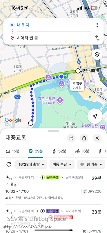 근데 막상 내려서 지도앱을 보니 직전역인 구단시타에서 내리는게 도보로는 더 빠르지 않았을까 싶어 아쉽더군요.