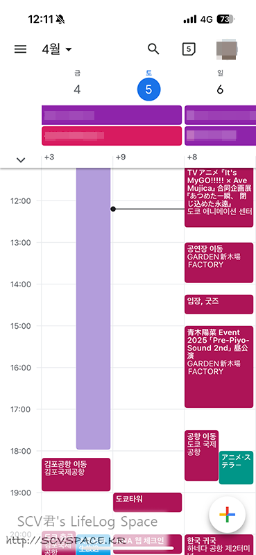 시간대로 나누긴 좀 애매하고 한 일로 글을 나눴습니다, 4/5(토) 벚꽃 본 이야기부터.