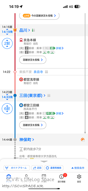 이제 구단시타역에서 신주쿠산쵸메까지 이동하게 될 겁니다.