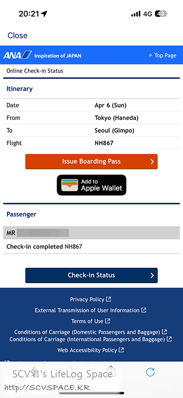 그래도 ANA 일본 출발편은 모바일 탑승권 발급이 되서 다행이지요.