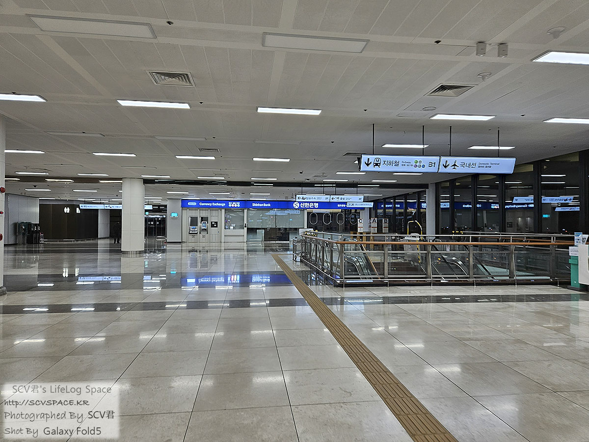 김포공항 리모델링하고 나서 이렇게 입국장과 출국장 서로서로를 볼 수 있게 해놓아서 불꺼진 공항 모습도 다 봅니다.
