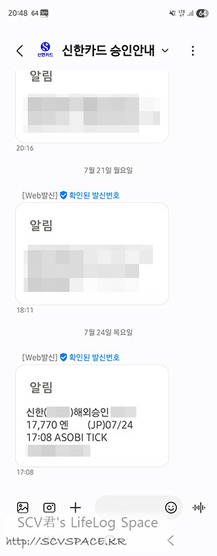 언제나처럼 등록해둔 카드로의 승인은 발표 7/25 13:00 전날인 7/24 17:00 정도. 17시 대에 카드 승인이 온다나봅니다.