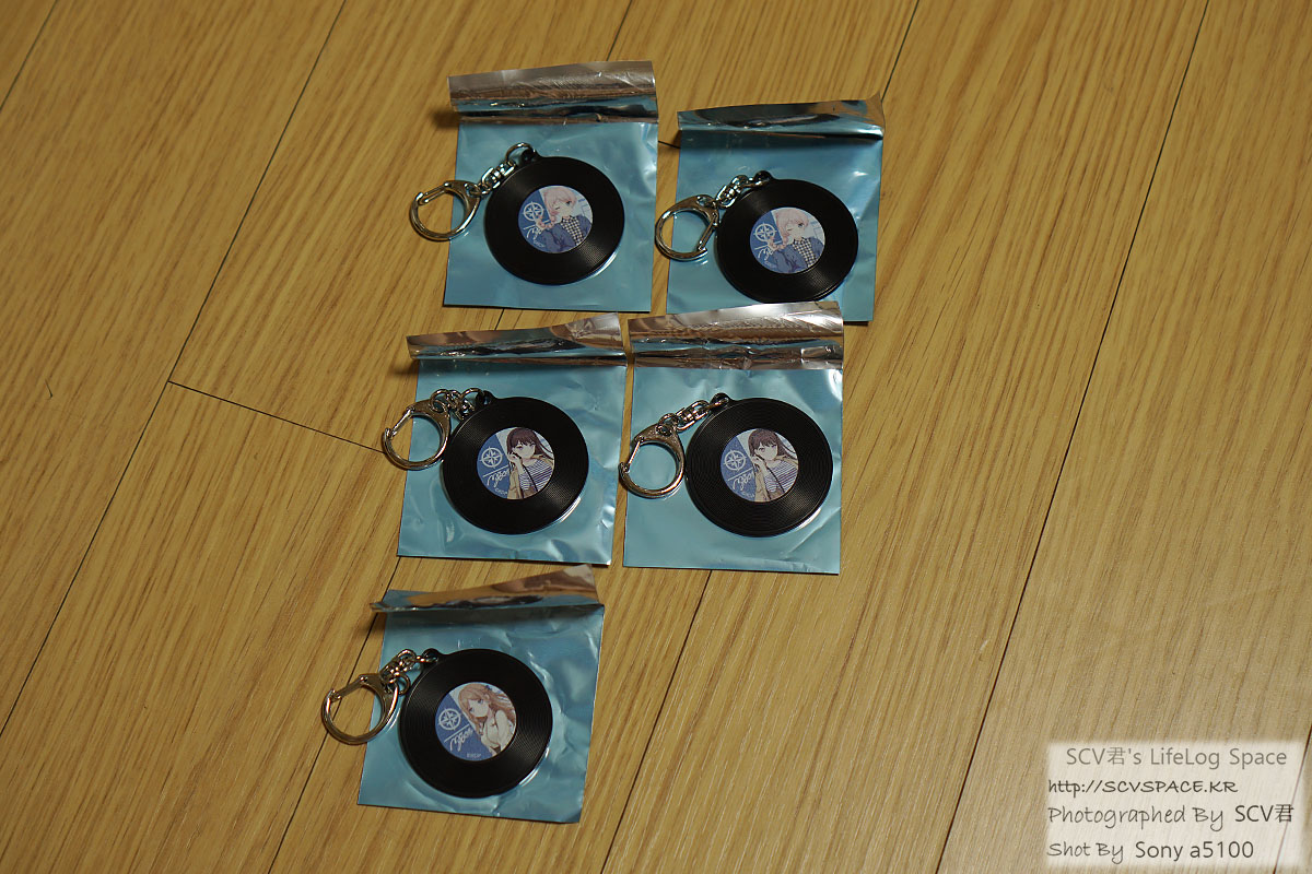 레코드판 모양 키홀더. 플라스틱 재질이고 개당 715엔.