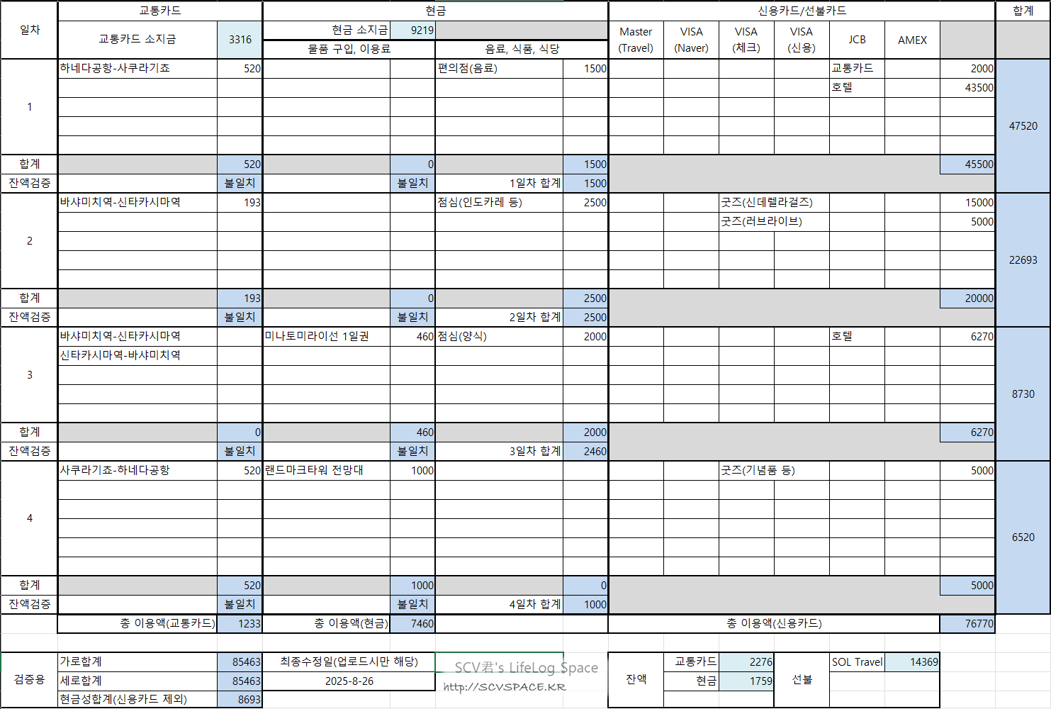 근래 워낙 여행 직전까지 계획 짜는데 익숙해져버려서, 대략 2주 전에 계획 짜는데도 가안 같이 되어버렸네요.
