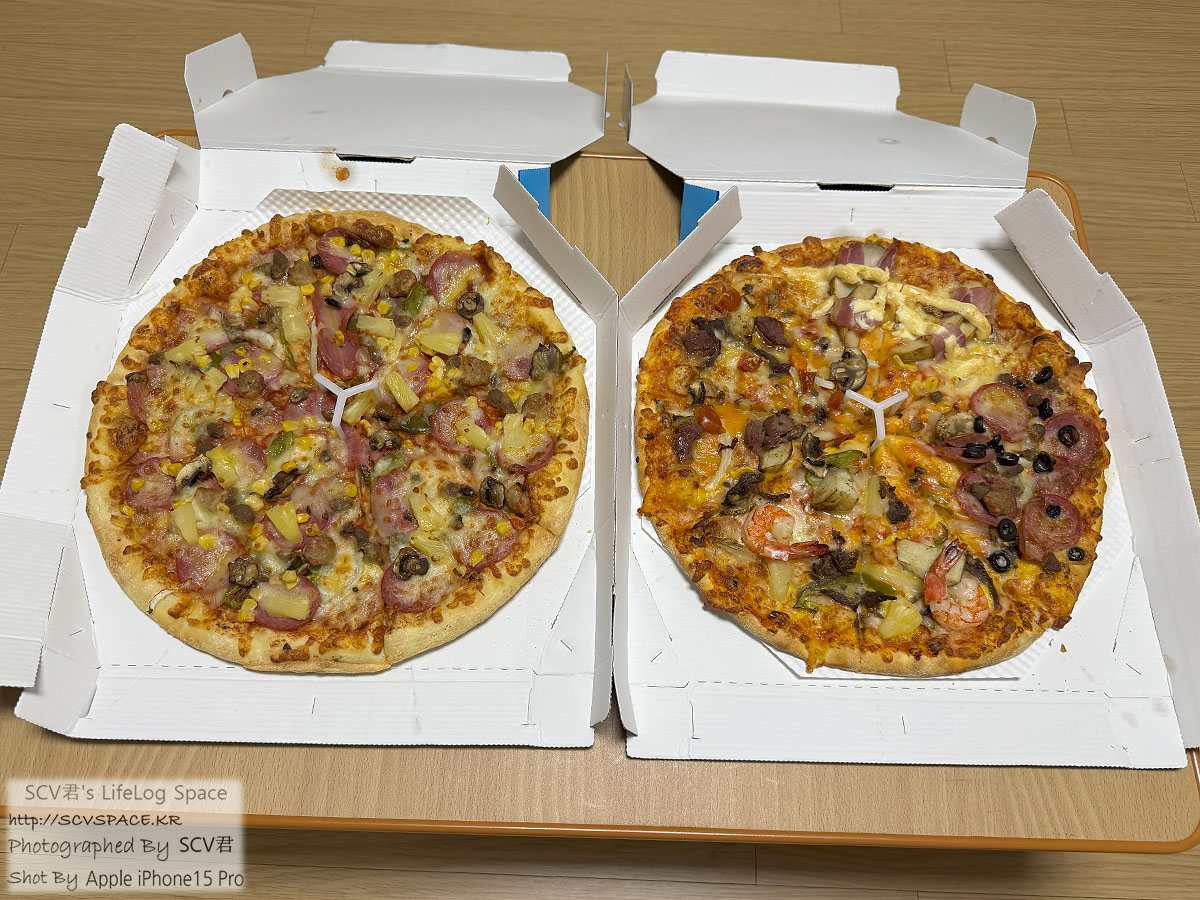 도미노가 특정 일자, SKT 할인 외에도 자체 '피자 1+1(메뉴제한, 추가금 있음)' 행사 하길래 그걸로 샀습니다.