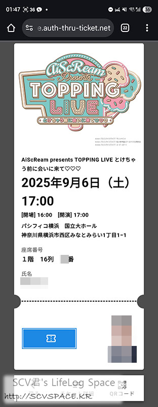 저거 제가 다른자리 이동한게 아니라 공연 본 자리에서 설문조사 QR코드 촬영한 것.