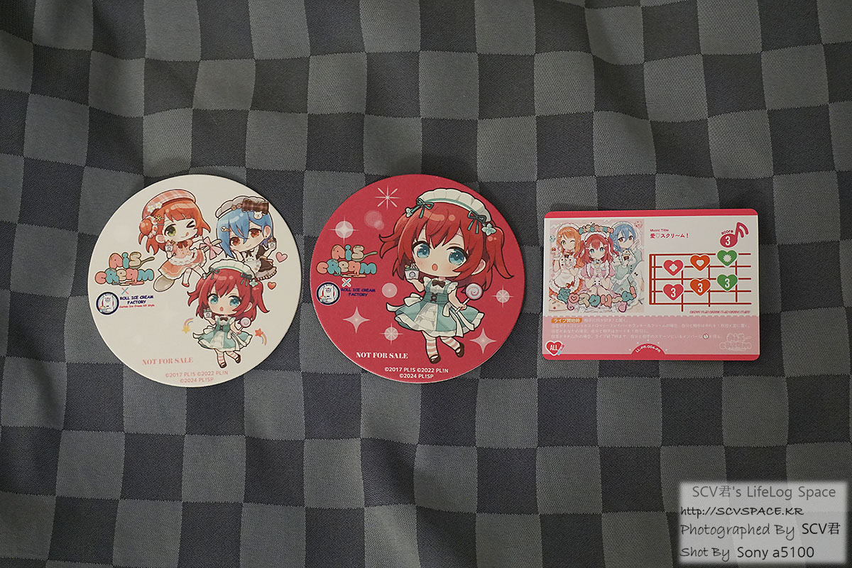 컵받침 쪽은 아이스크림, 음료 한개씩 먹은건데 멤버 셋이 모인 쪽이 하나 나온걸 운 좋다 생각하고 있습니다.