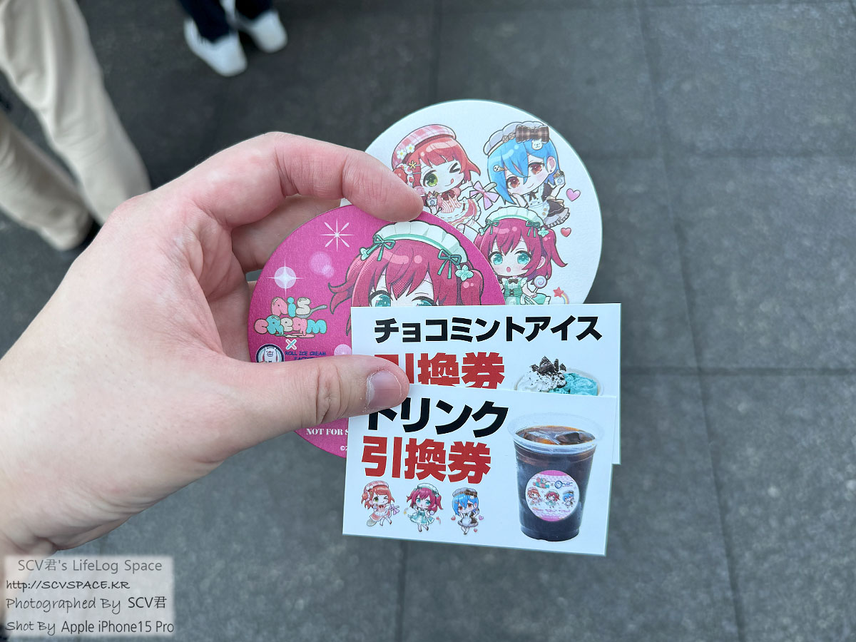 컵받침 쪽은 아이스크림, 음료 한개씩 먹은건데 멤버 셋이 모인 쪽이 하나 나온걸 운 좋다 생각하고 있습니다.