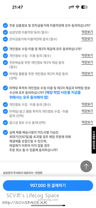 이건 다음날(22일, 월) 회사근처 삼성 오프라인 매장에 가서 방문수령할때의 모습.