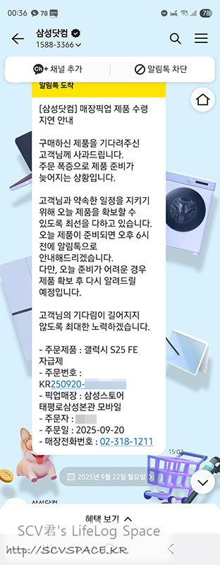 이건 다음날(22일, 월) 회사근처 삼성 오프라인 매장에 가서 방문수령할때의 모습.