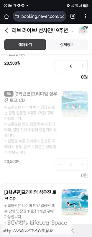 참고로 전시회 입장티켓은 20,000원(청소년 할인 있음), 입장시에만 받아올 수 있는 특전 토크CD가 1, 2, 3학년 각각 20,500원.
