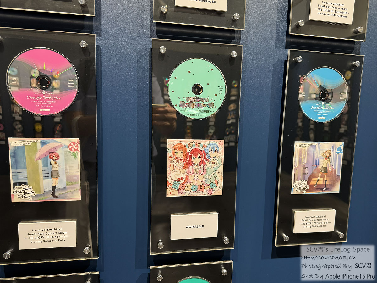 아무래도 들을 수 있는 설비까지 갖추진 않았고, 데뷔 싱글부터 블루레이 특전 등 CD로 발매된 모든 것들을 모은 공간입니다.