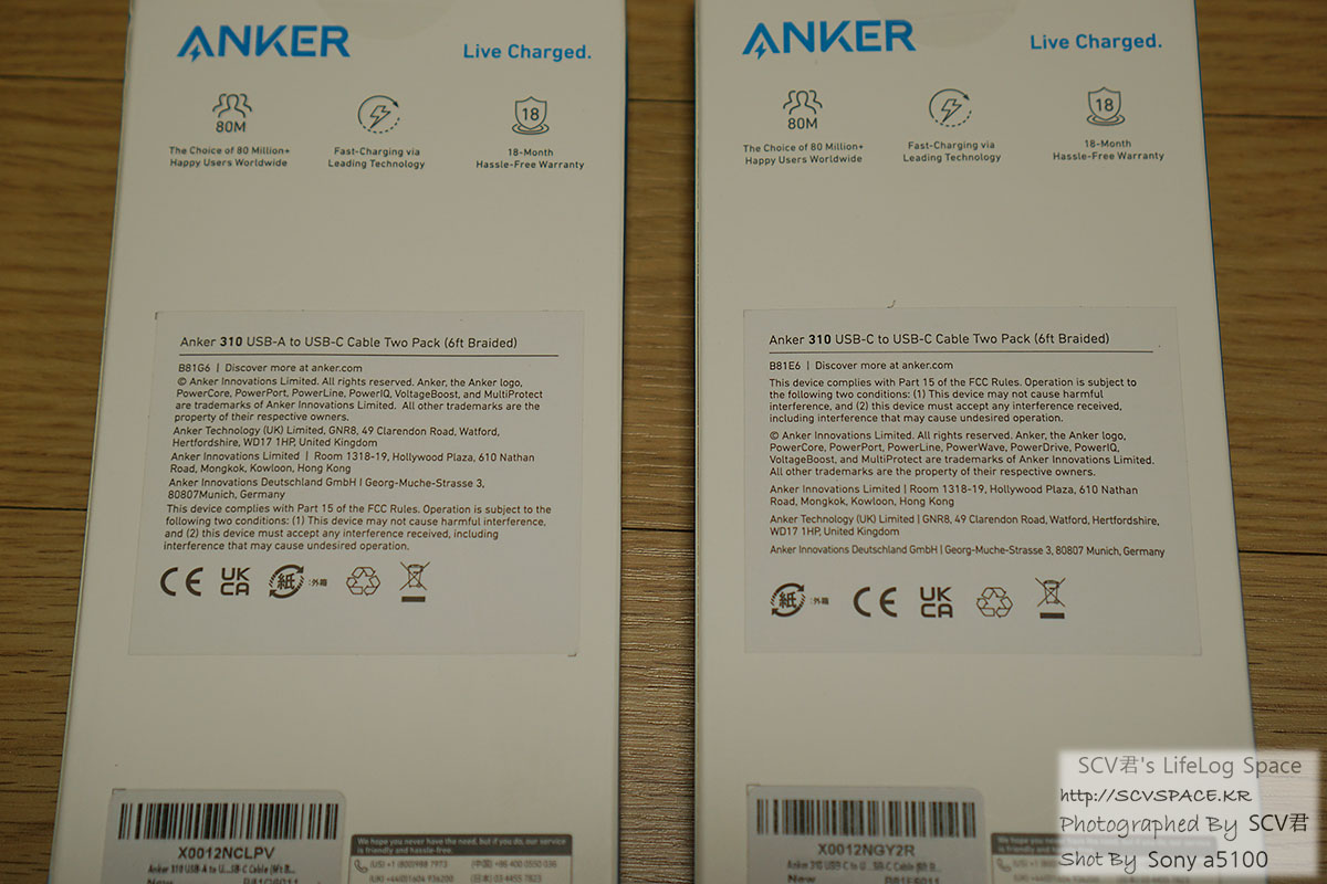 Anker USB-A to USB-C, USB-C to USB-C ケーブル (한박스 2개입) 1,490엔 [아마존 USB-A to C, 아마존 USB-C to C]