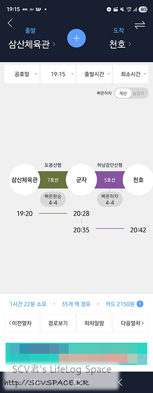 단지 루트가 집으로 바로 가는게 아니라 회사에 두고온 물건 찾으러 가는 경로가 되어서.. 환승하고 나니 1호선이네요.