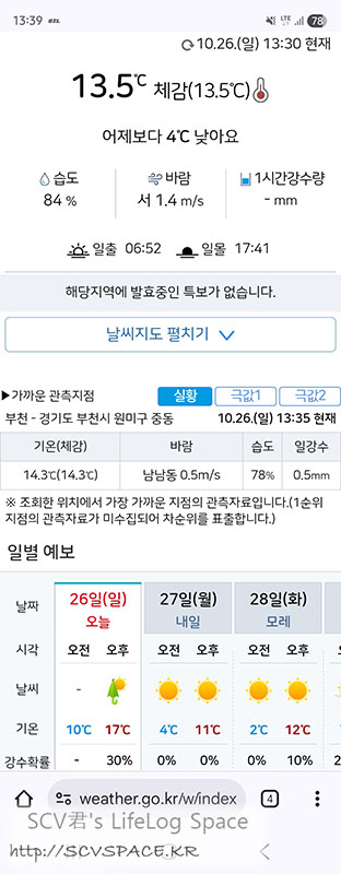 며칠 전에는 낮기온이 20도였는데 이젠 낮기온이 15도도 안됩니다 (표시는 저렇게 되는데 결국 17도 못감)