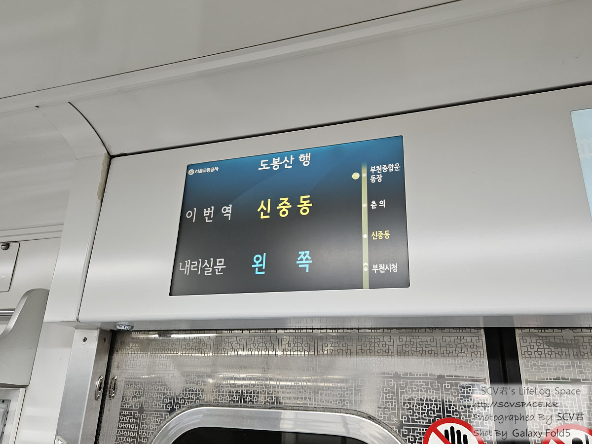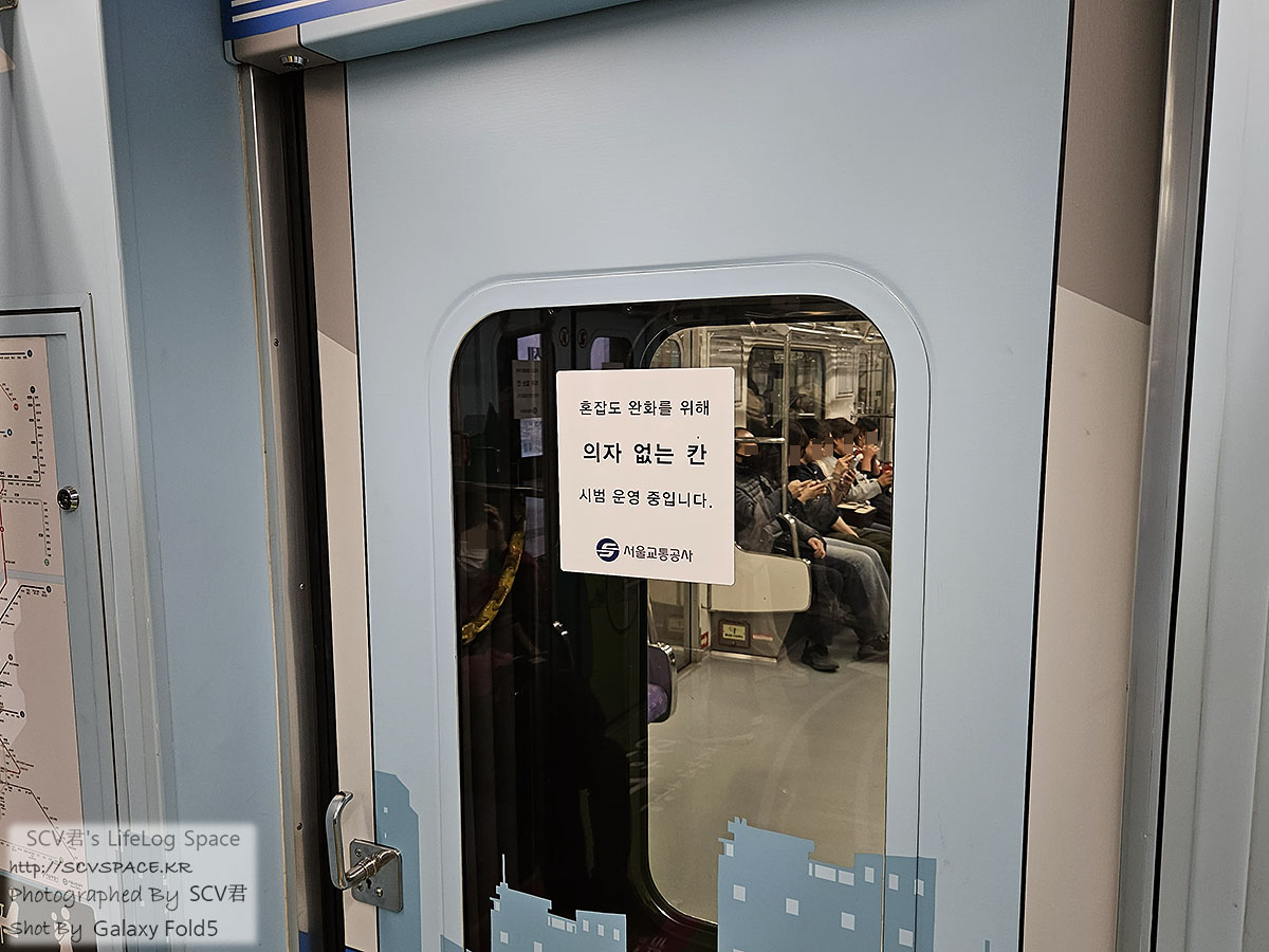 이날은 무슨 당첨운(?)인지 오래전 7호선에 설치했다던 의자 없는 칸에 탑승하게 됐네요.