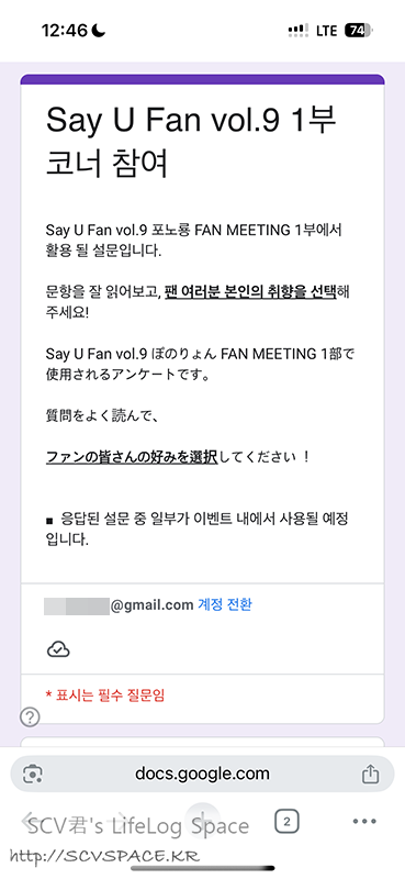 앉아서 기다리는 15분 남짓 화면 앞 코너참여 구글 폼 작성하면서 기다렸습니다.