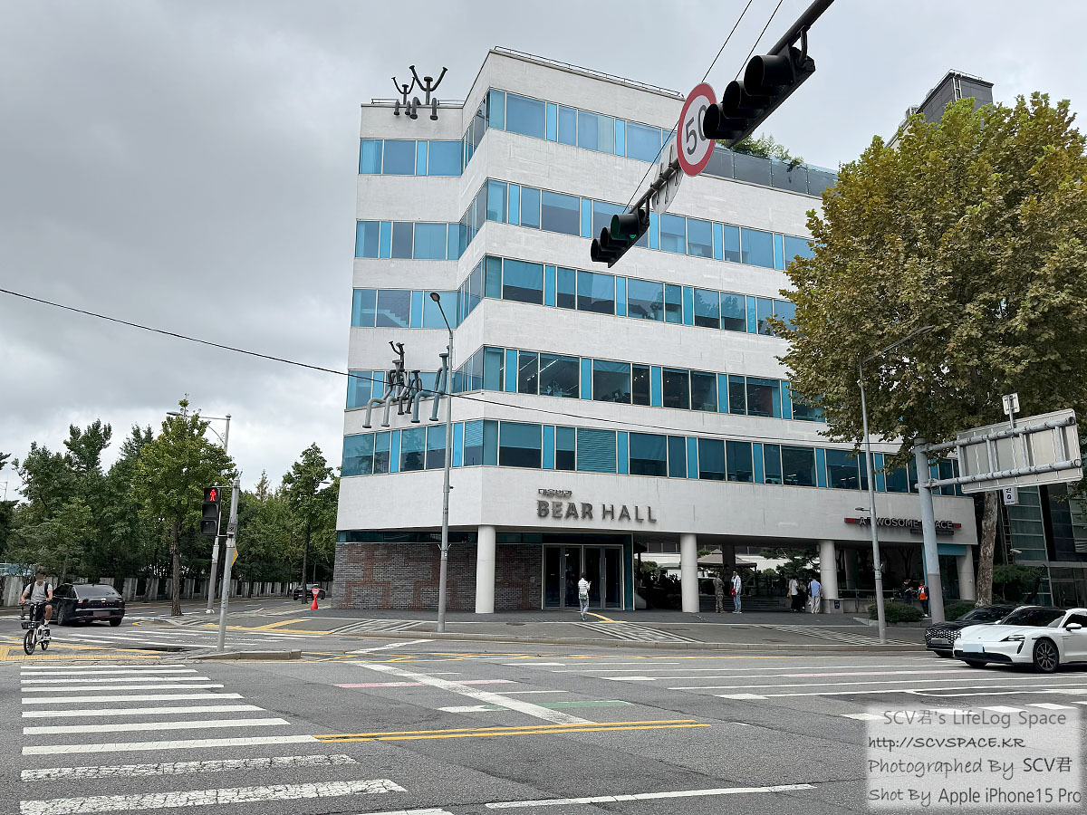 왼쪽 사진처럼 건물 이름이 있는 쪽으로 들어가면 출입통제기가 설치된 직원 출입구가 나와서 당황하기 딱 좋고, 베어홀은 반대편 오른쪽으로 돌아 지하로 내려와야 접근 가능.