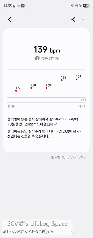 분명 걸음걸이는 관찰이 안되는데 제가 팔이 아파서 온 신경 집중하면서 서있었더니 심박수가 꽤 높았던 모양.
